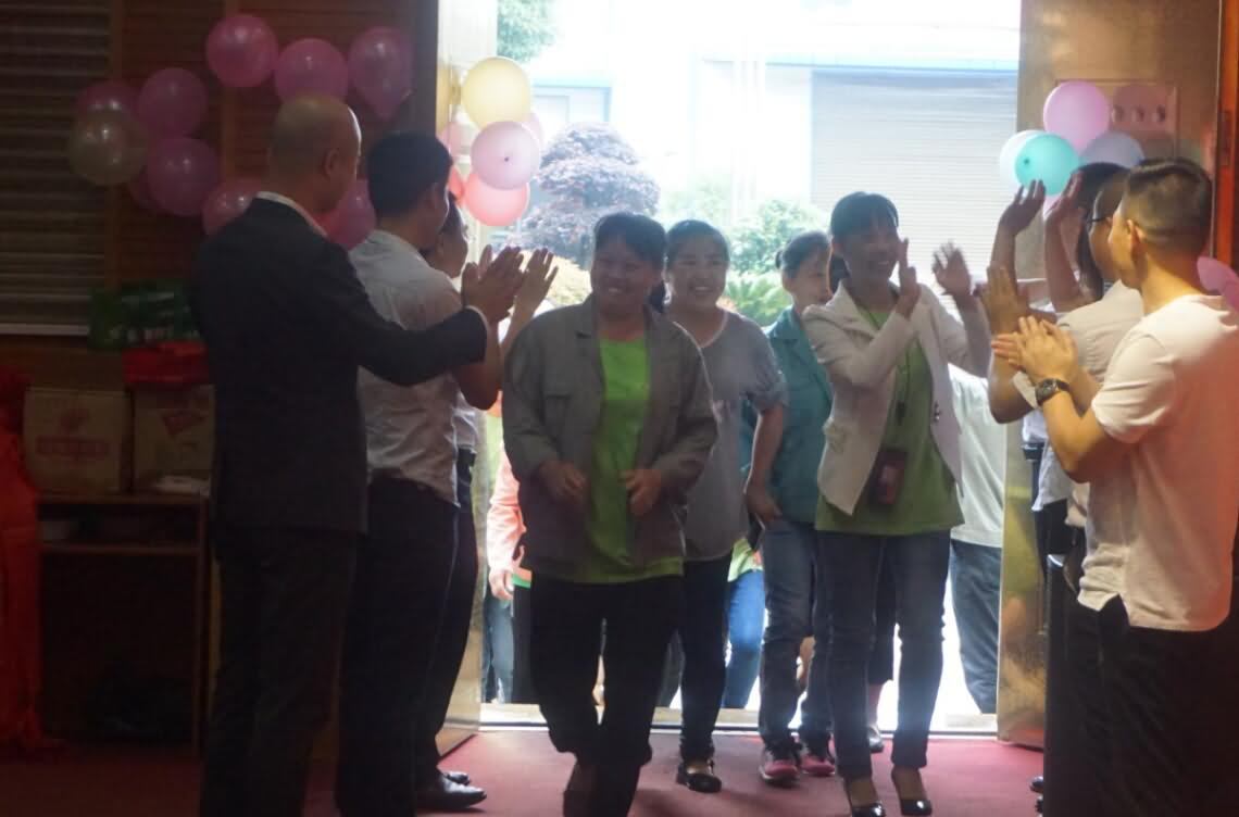 寰宇股份5月份標(biāo)桿合影(左三)丁仙妹(左四)周慶梅(左五)湯世娥(左六)羅佳佳