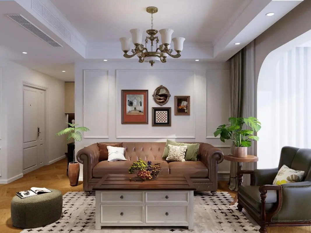 淺色系的背景色保證整個空間不會過于壓抑,主體色就可以采用復(fù)古色了。美式家具多為褐色和棕色,搭配相近色的地板,復(fù)古氣息滿滿,兼具濃郁的歷史文化感。